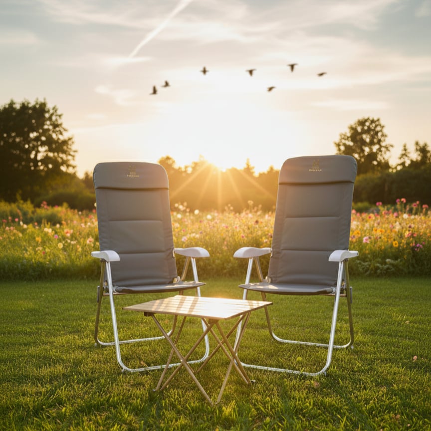 2× كرسي قابل للطي (لون رمادي غامق مميز): أكثر من 4 وضعيات مريحة تناسب الاسترخاء أو الجلوس.