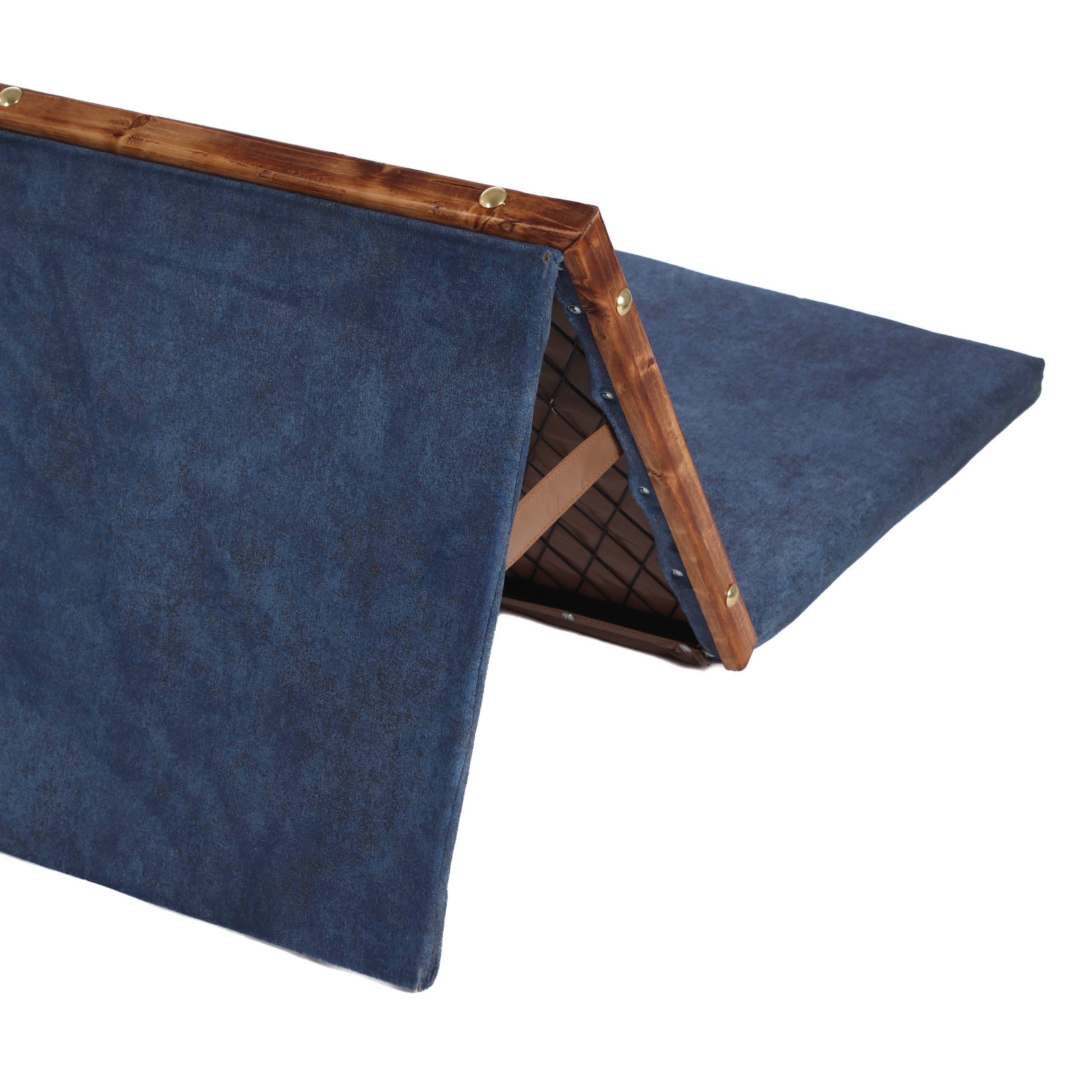 - لمسات تصميم فاخرة: خشب طبيعي للأطراف، مسامير نحاس، وتلبيس خلفي بنفس القماش.